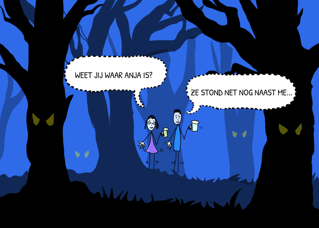 “O maar ik vindt het wel heel belangrijk dat jij erbij bent”, zei hij. “Zullen we dan een biertje gaan drinken in het bos?” Dat vond Cisca maar een griezelig idee, lachte ze. Haar collega’s moesten er ook hartelijk om lachen. Toen opperde iemand om een locatie te zoeken waar het rustig is en verder geen andere mensen zijn. Een collega bood aan om zo’n plek te gaan zoeken. Dus nu gaat het hele team - inclusief Cisca - samen borrelen op een nog te ontdekken rustige plek.