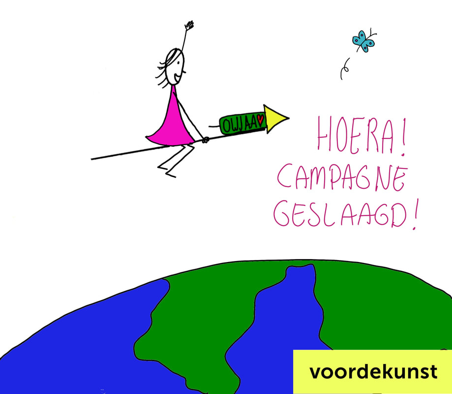 Verlengen bleek uiteindelijk een goede keus, want een week later, op mijn verjaardag, bereikte de campagne de 80%. Bij Voordekunst werkt het zo dat je dan een voorstel doet aan je donateurs hoe je met 80% toch je project kunt realiseren. Donateurs hebben dan 5 dagen de tijd om hun donatie eventueel in te trekken. En alhoewel ik vermoed dat dat niet vaak voorkomt, was de campagne toch nog steeds niet officieel geslaagd. Dat verlossende nieuws kwam dus gisterochtend.