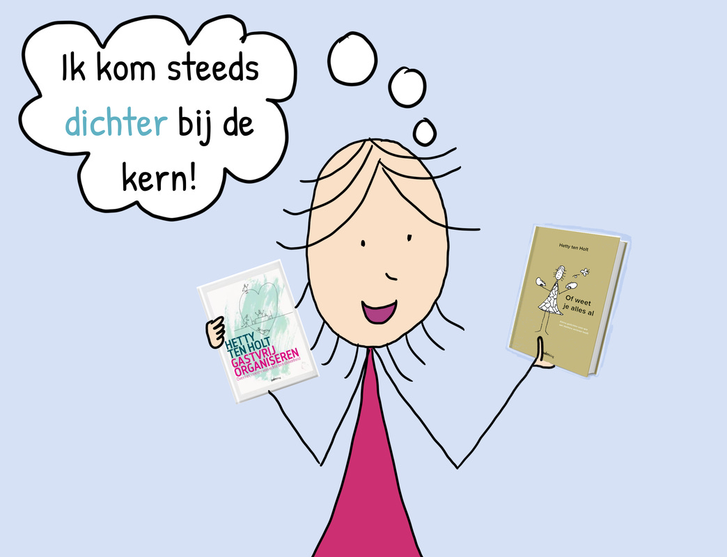 En nu heb ik dus twee boeken op mijn naam staan: een managementboek en een dichtbundel. Twee genres die op het eerst gezicht ver uit elkaar lijken te liggen. En toch heb ik de afgelopen tijd ontdekt dat ik ze heel goed samen kan brengen. Zo gebruik ik steeds vaker tekeningen en gedichten in adviesrapportages en onderzoeksverslagen, omdat ze de boodschap ondersteunen. Ik heb gemerkt dat de essentie van een verhaal soms heel helder in een tekening te vatten is. Dit vergroot de helderheid en creativiteit van mijn adviezen en maakt het ook nóg leuker om ze te lezen.