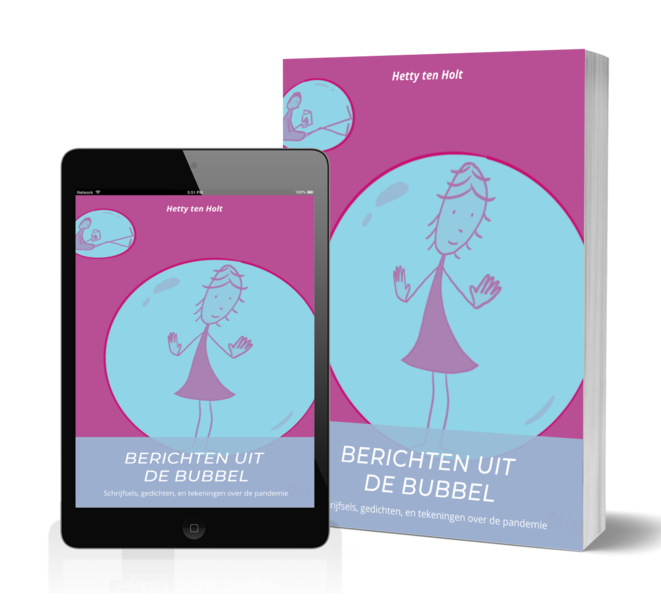 Eigenlijk gaat dat best goed. Ik heb het afgelopen jaar veel geschreven, getekend en gedicht op mijn blog. De blogs over corona heb ik gebundeld in het e-book Berichten uit de bubbel. Schrijfsels, gedichten en tekeningen over de pandemie. Een boek vol verhalen en ontdekkingen, niet zelden met enige humor opschreven. Onderaan dit artikel kun je het boek online lezen. Lees je het liever op je e-reader of tablet? Bestel dan gratis jouw exemplaar via de onderstaande knop (als PDF of EPUB).