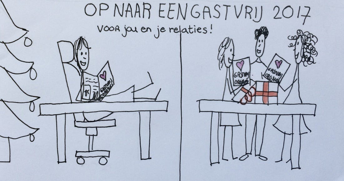 Tot en met 20 december krijg je tijdelijk bij je bestelling een unieke handgetekende nieuwjaarskaart cadeau! En als je 6 of meer exemplaren van het boek bestelt, kom ik in het nieuwe jaar langs bij jouw team om jullie op weg te helpen met het Gastvrij Organiseren van je eigen projecten.