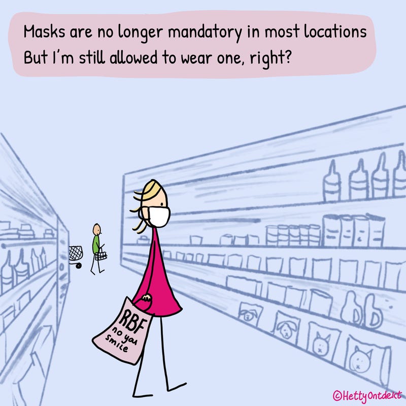 After a period of getting used to them, I noticed that I started to like having to wear a mask now and then. Because I no longer had to think about looking 'friendly' enough or deal with random strangers telling me to smile.