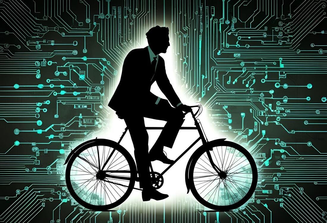 de man die machines leerde denken rijdt op een versleten fiets naar zijn werk