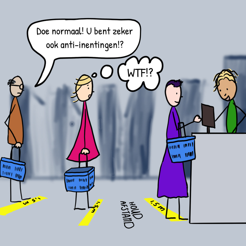Wie? Ik?Hetty ten Holtaug 13, 20211Delen(klik op de pijlen om het stripje te lezen)PlayPauseHet kost vaker enige moeite om anderen op afstand te houden. Maar ik was nog niet eerder voor anti-vaxxer uitgemaakt.